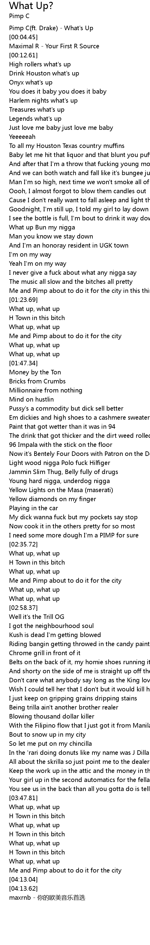 | [00:00.56] | Pimp C ft. Drake What' s Up |