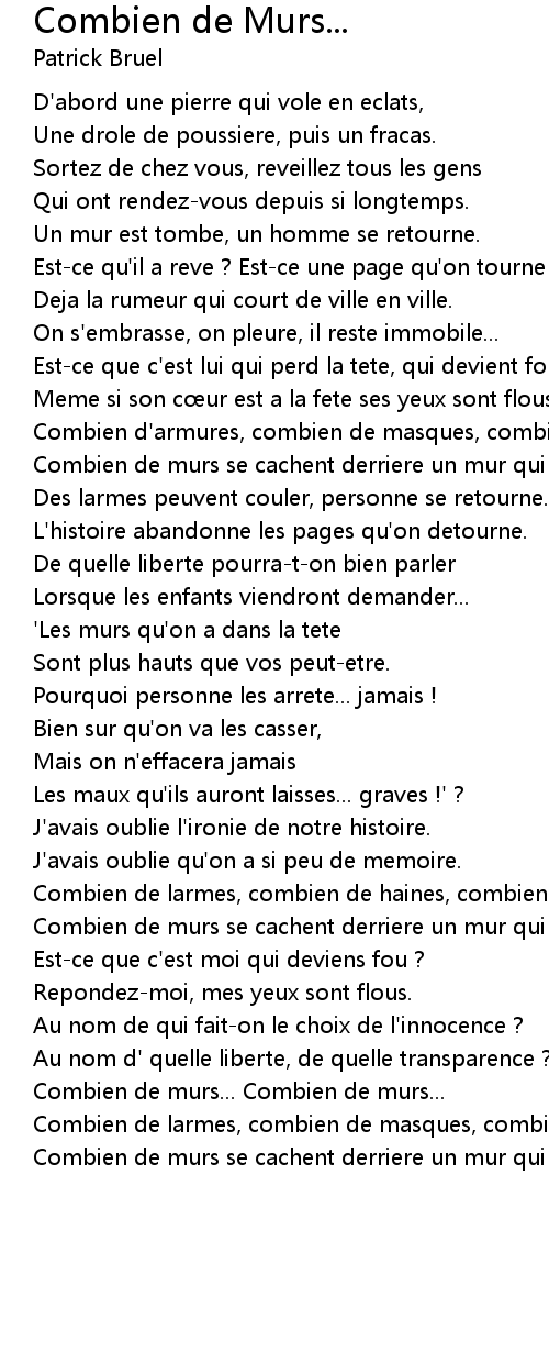 | Combien de murs se cachent derriere un mur qui tombe ? |
