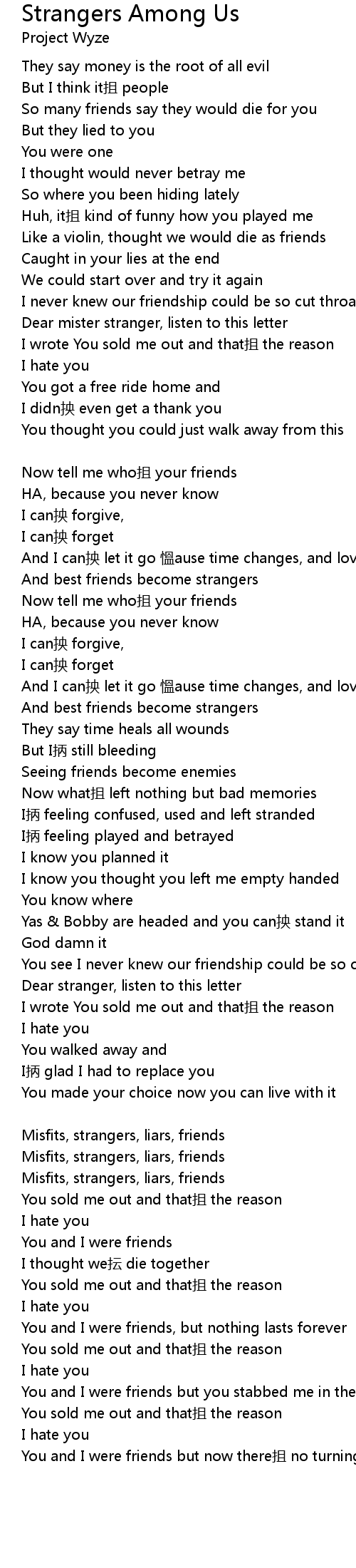 | You and I were friends but now there zhā no turning back Chorus |