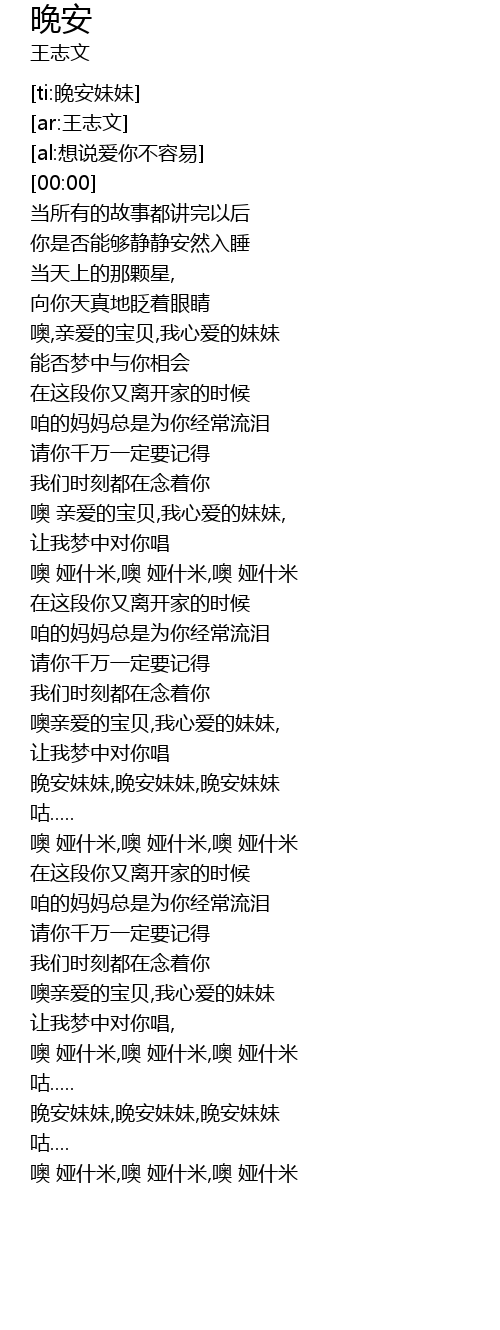 | [04:16.25] | 晚安妹妹,晚安妹妹,晚安妹妹 |