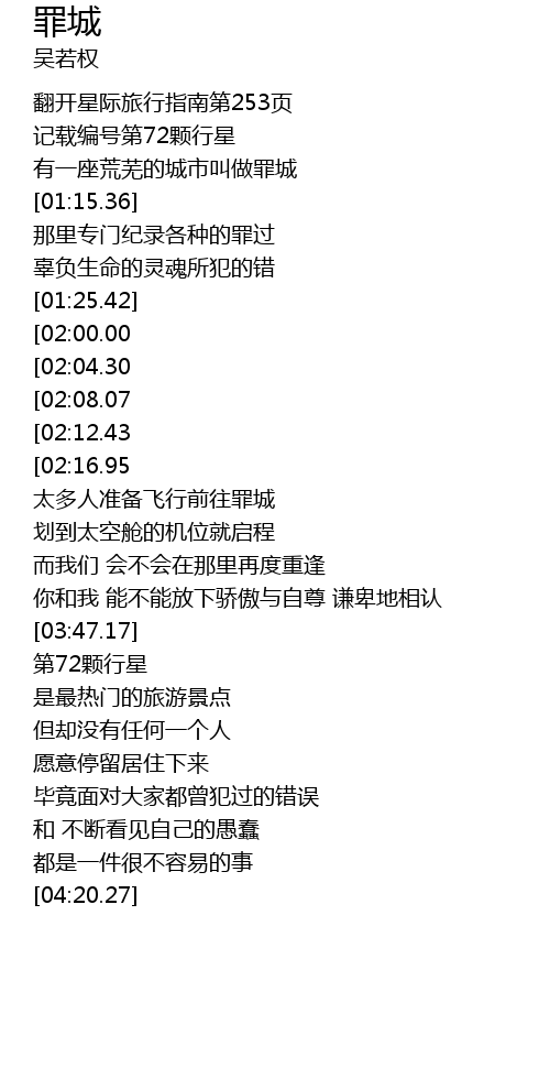 | [01:07.68] | 有一座荒芜的城市叫做罪城 |