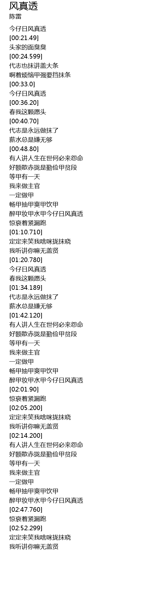| [02:43.70] | 醉甲妆甲水甲今仔日风真透 |