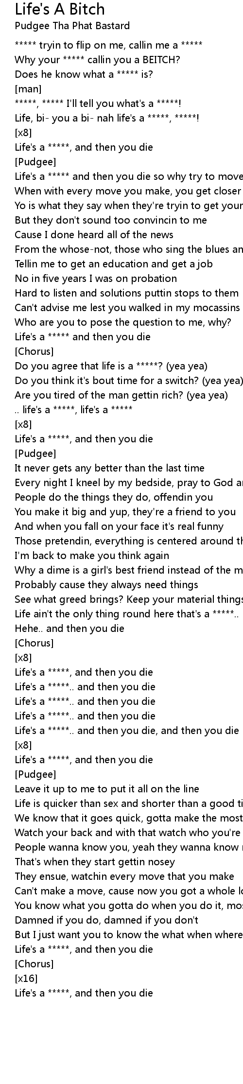 Life, bi- you a bi- nah life's a *****, *****! |
