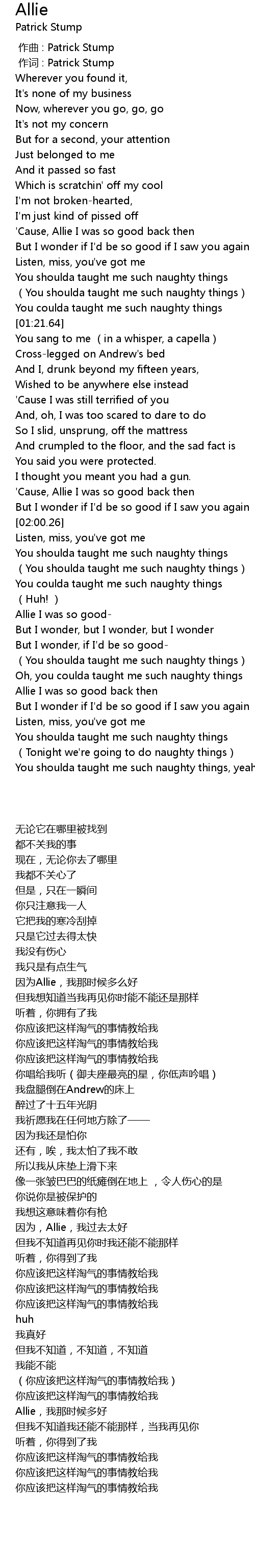 | [02:58.11] | (You shoulda taught me such naughty things) |