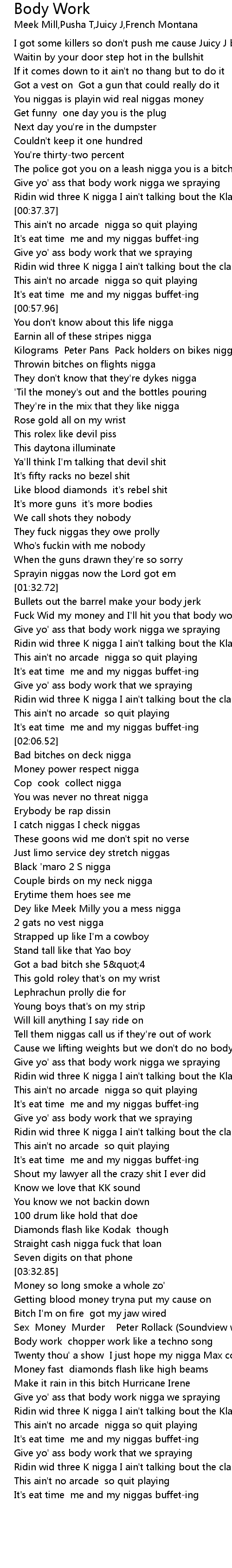 Give yo' ass that body work nigga we spraying |