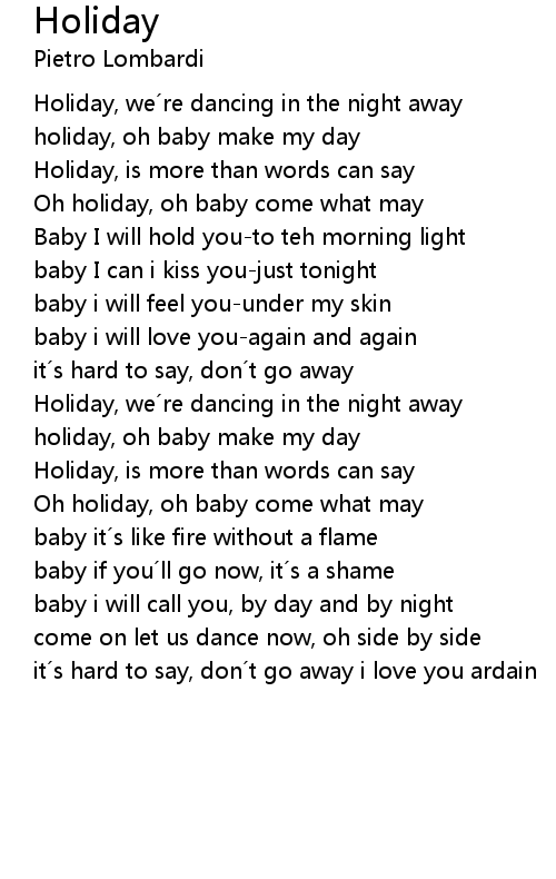 | Holiday, we re dancing in the night away | |