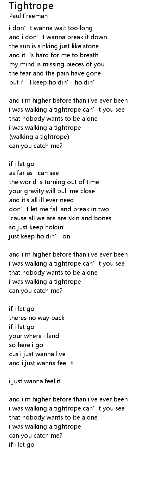 | i was walking a tightrope can' t you see | |