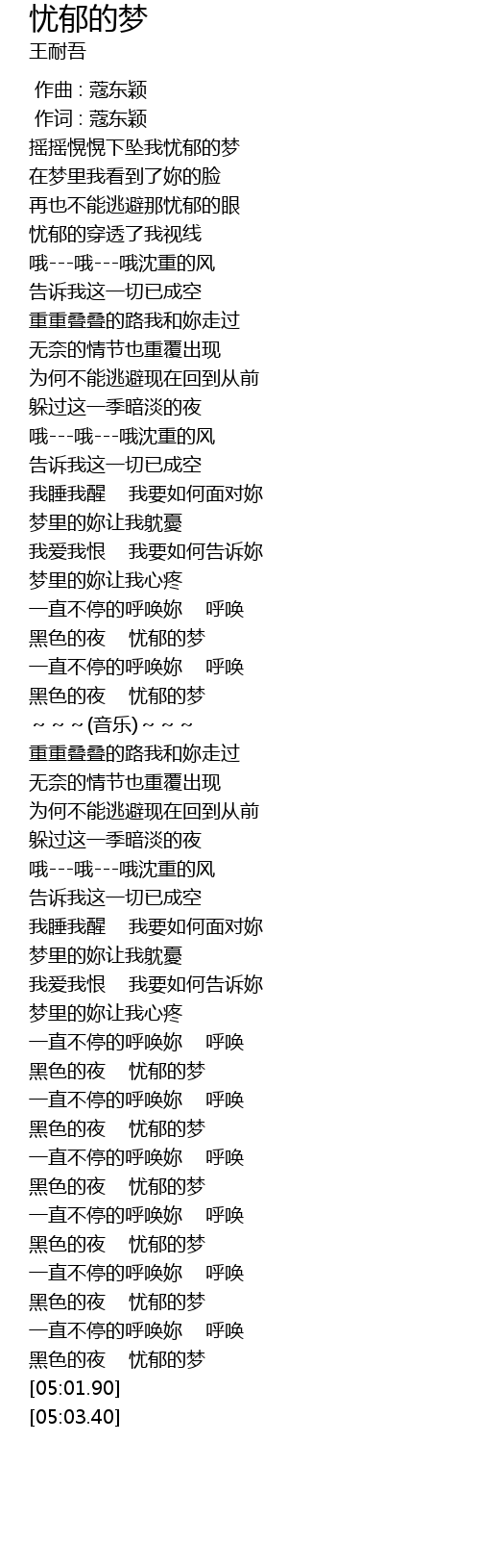 | [04:57.09] | 黑色的夜 忧郁的梦 |