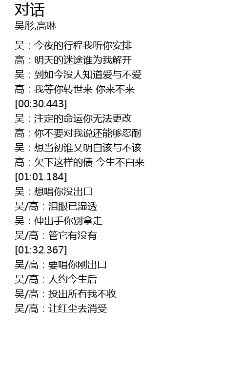 | [02:15.371] | 吴/高:要唱你刚出口 |