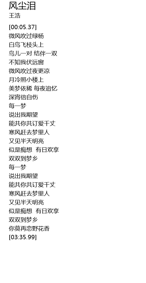 | [01:15.17] | 美梦依稀 每夜追忆 |