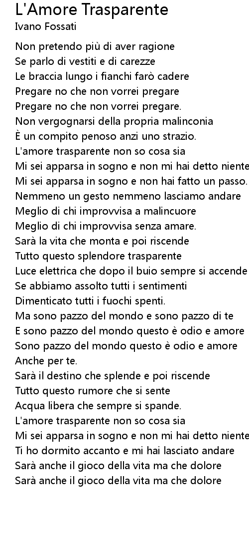 | [03:09.930] | L'amore trasparente non so cosa sia |