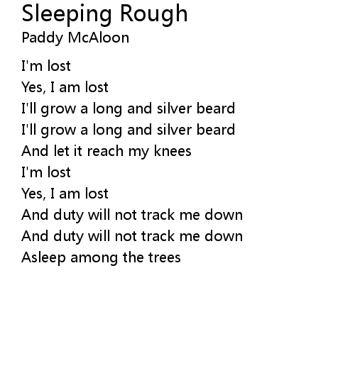 | Song | Sleeping Rough |
