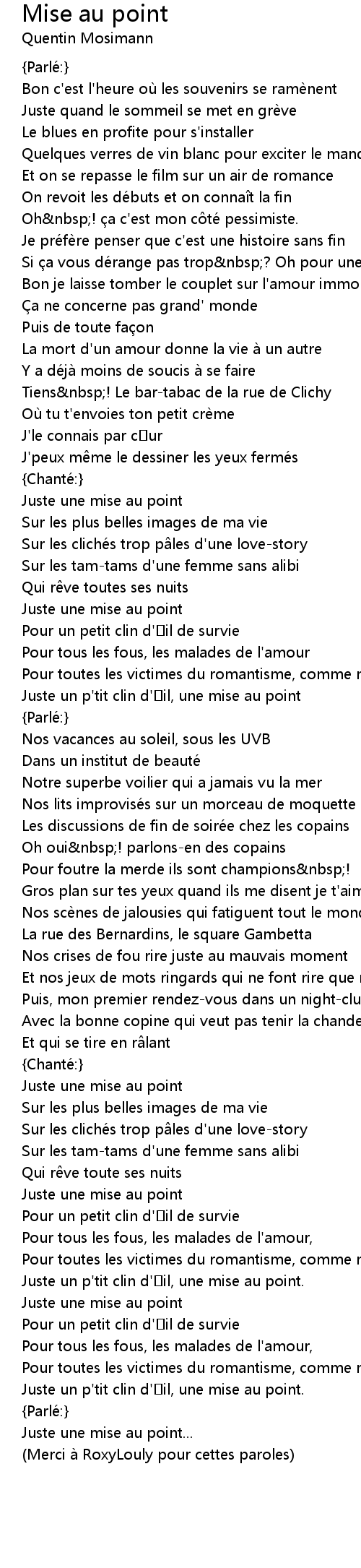 | Merci à RoxyLouly pour cettes paroles |