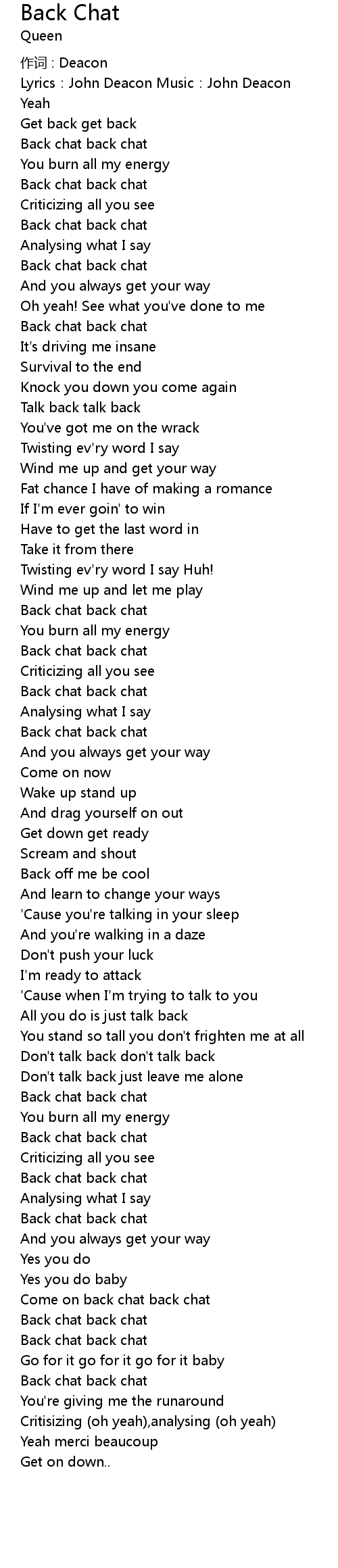 | Song | Back Chat |