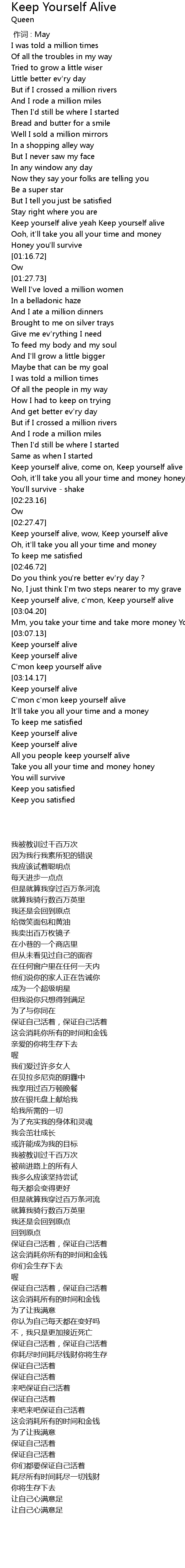 | [03:22.36] | Keep yourself alive |