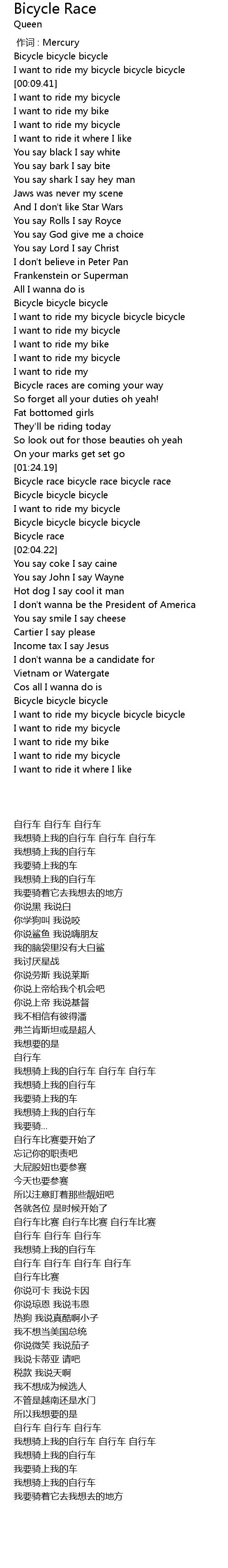 | [01:29.36] | Bicycle race bicycle race bicycle race |