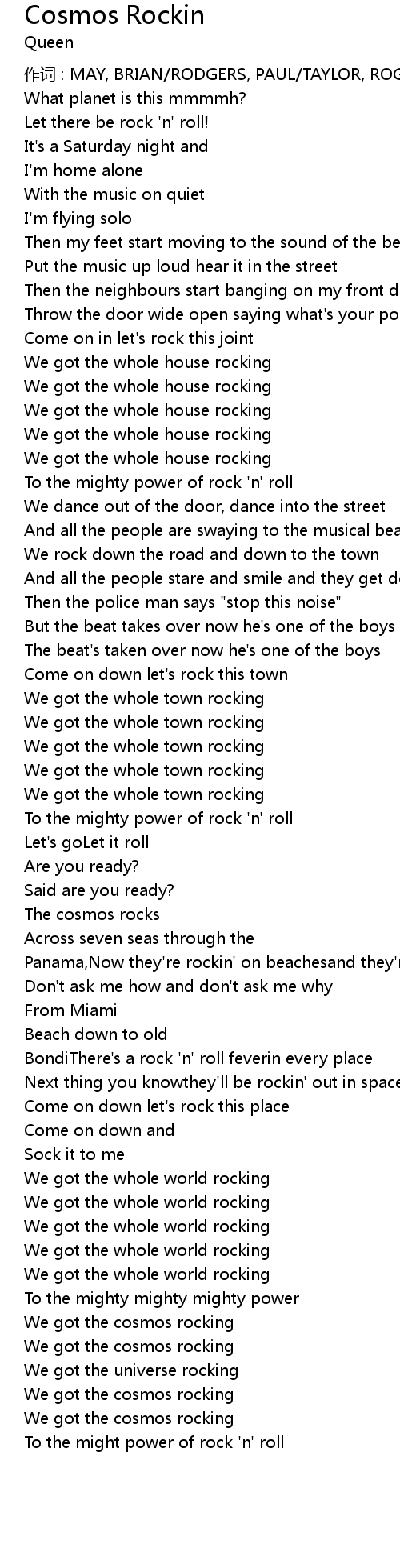 | 作词 : MAY, BRIAN/RODGERS, PAUL/TAYLOR, ROGER | |