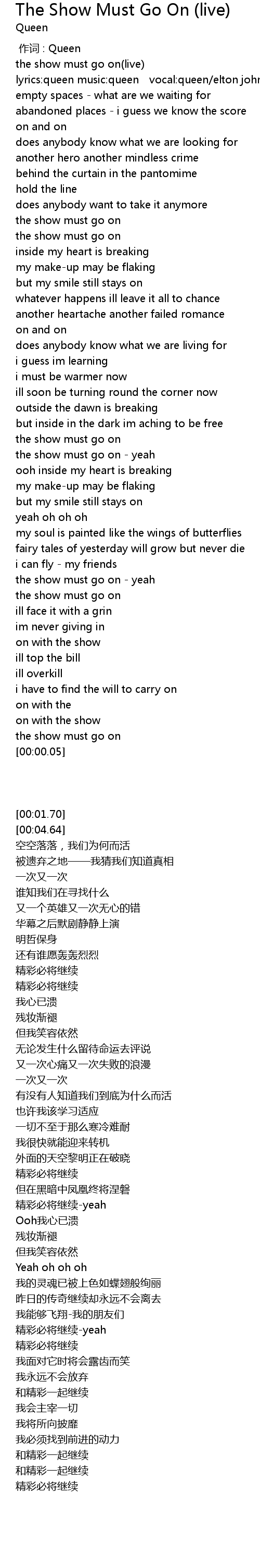 | [00:01.70] | the show must go on(live) |