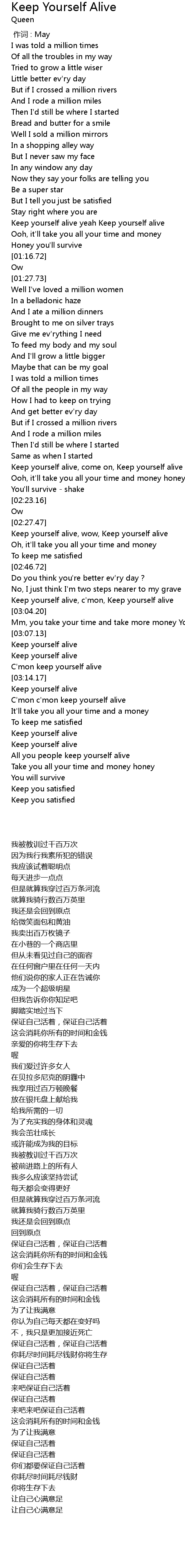 | [03:22.36] | Keep yourself alive |