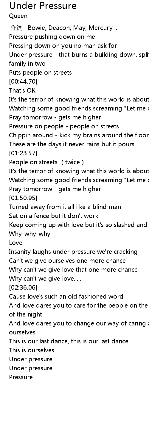 | [03:17.91] | Under pressure |