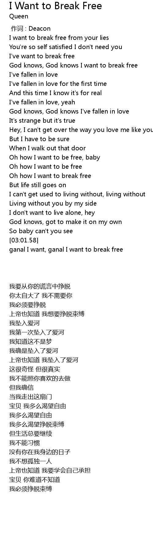 | [03:04.70] | ganal I want, ganal I want to break free |