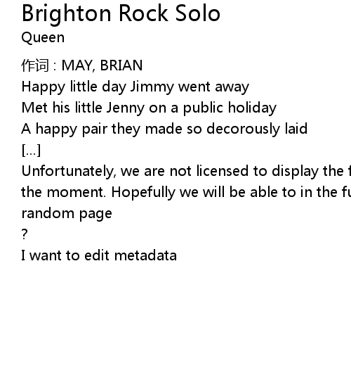 | Unfortunately, we are not licensed to display the full lyrics for this song at the moment. Hopefully we will be able to in the future. Until then, how about a | |