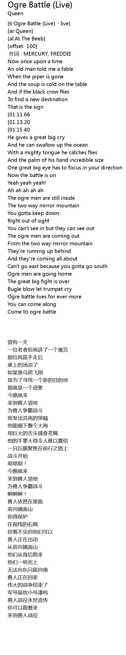 | [00:45.07][01:15.40] | Come to the ogre battle fight |