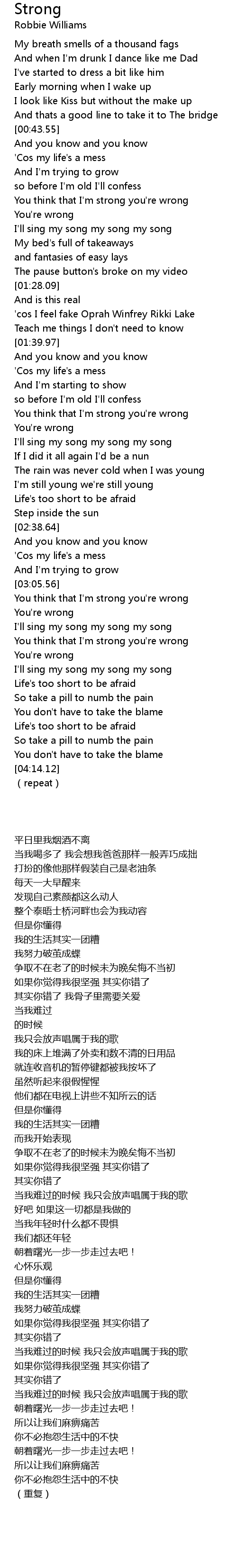 | [00:55.86] | You think that I' m strong you' re wrong |