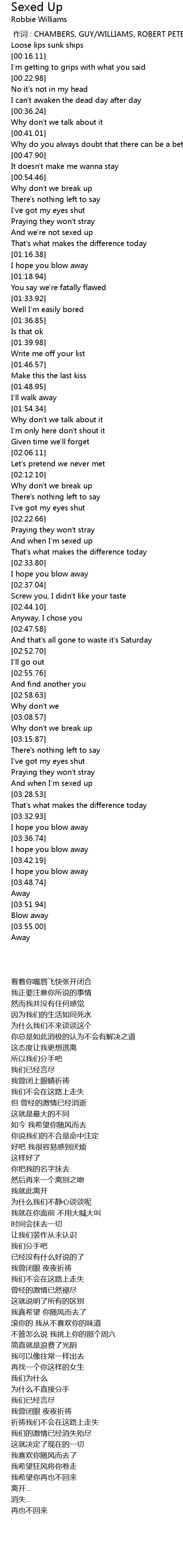 | [00:00.00] | 作词 : CHAMBERS, GUY/WILLIAMS, ROBERT PETER |