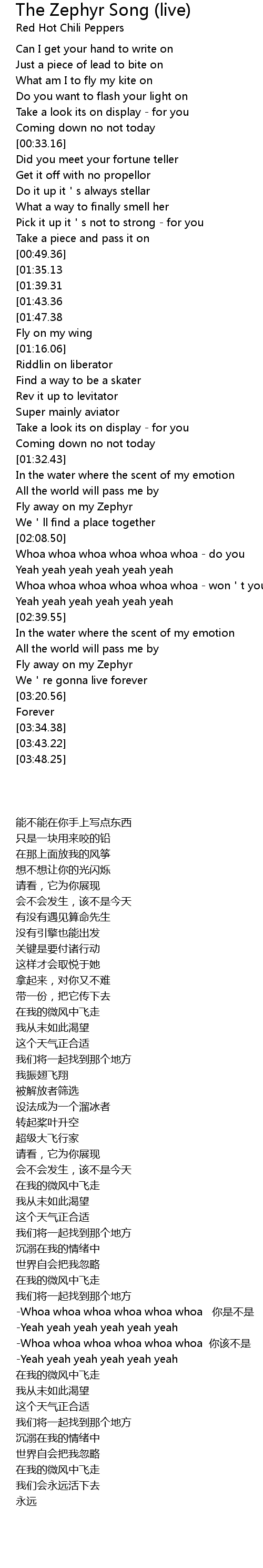 | [02:40.39][01:35.13][00:52.53] | Fly away on my Zephyr |