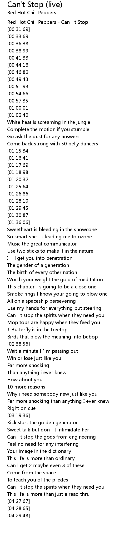 | [00:00.00] | Red Hot Chili Peppers - Can't Stop |
