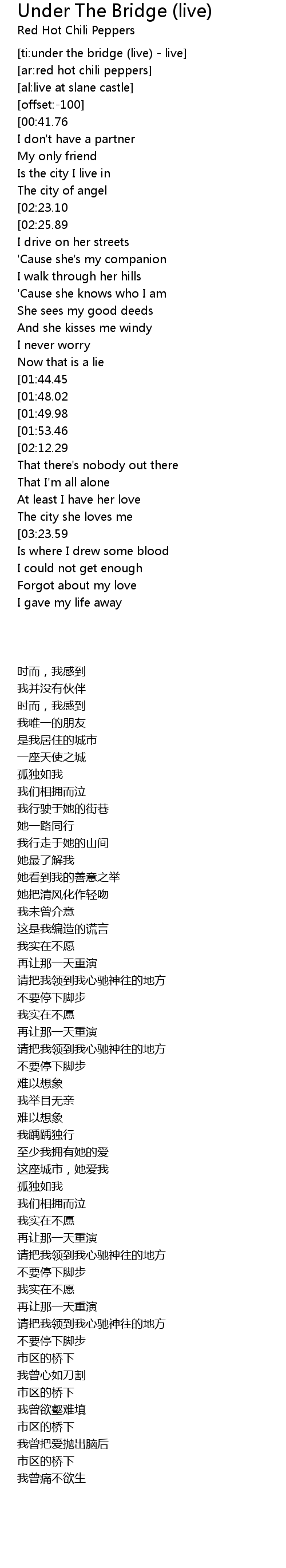 [ti:under the bridge (live) - live] |