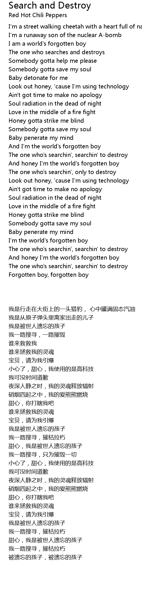 The one who's searchin', searchin' to destroy |