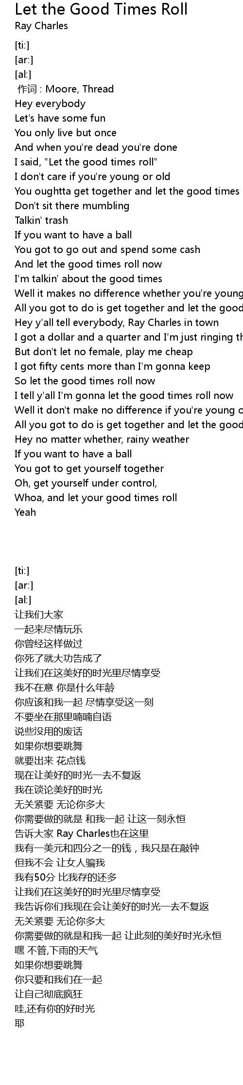 | [00:40.46] | I said, "Let the good times roll" |