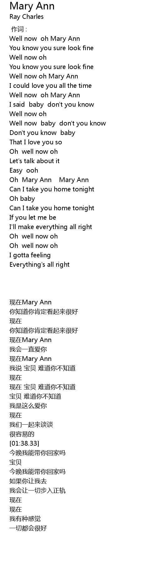 | [01:38.33] | Oh Mary Ann Mary Ann |