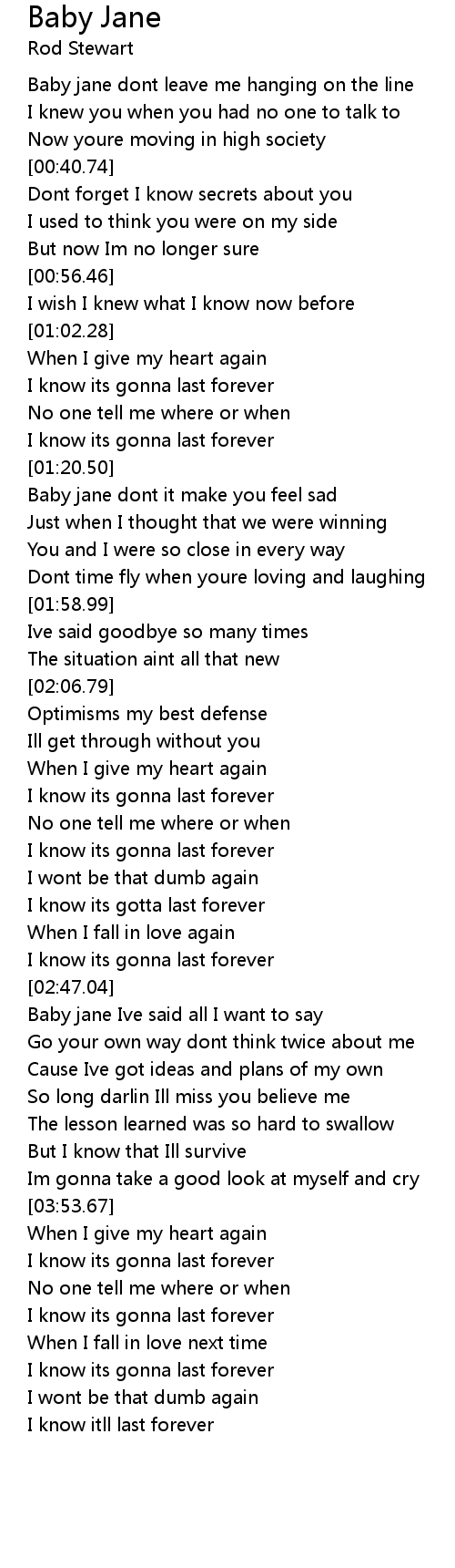 [00:18.32] Baby jane dont leave me hanging on the line