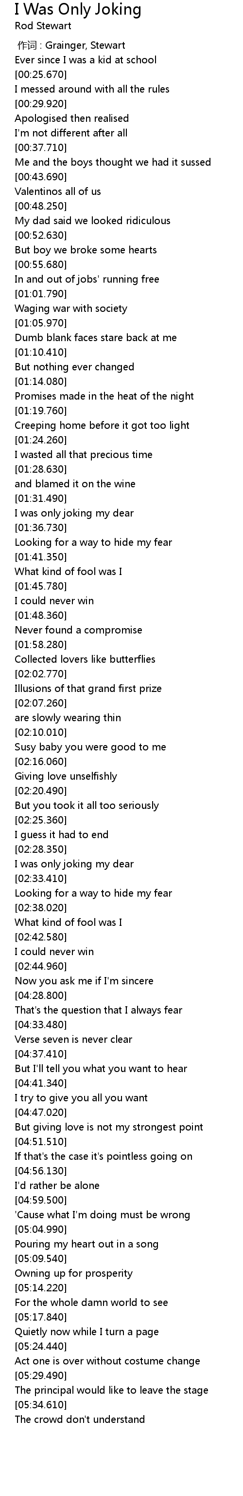 | Song | I Was Only Joking |