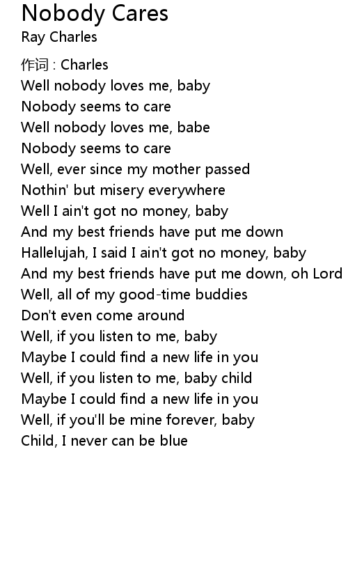 | Well nobody loves me, baby | |