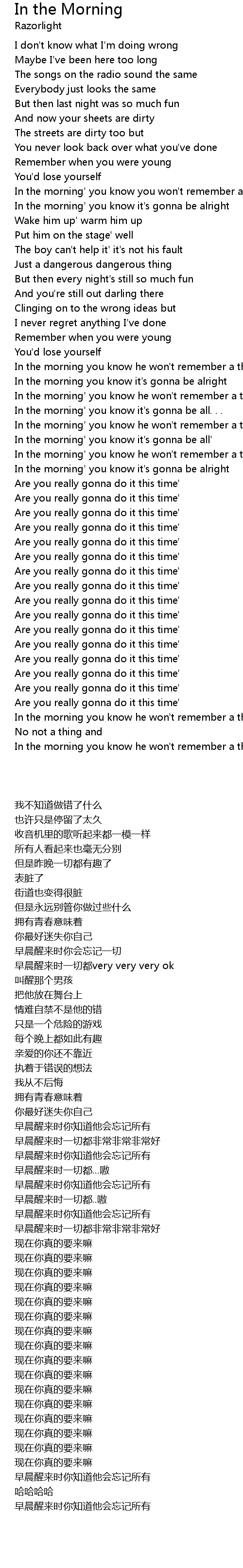 In the morning' you know it's gonna be all. . . |