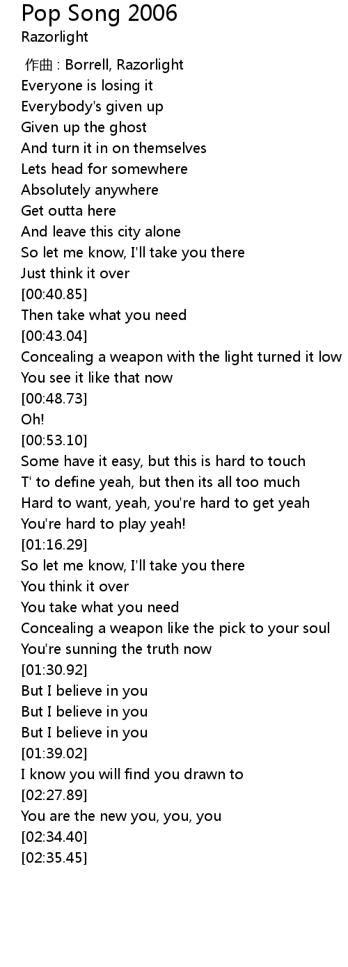 | [01:35.79] | But I believe in you |