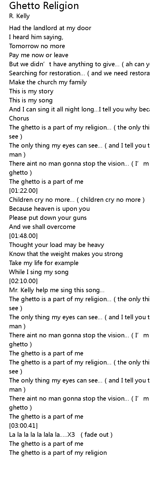 | [01:01.96] | The ghetto is a part of my religion…(the only thing my eyes can see) |