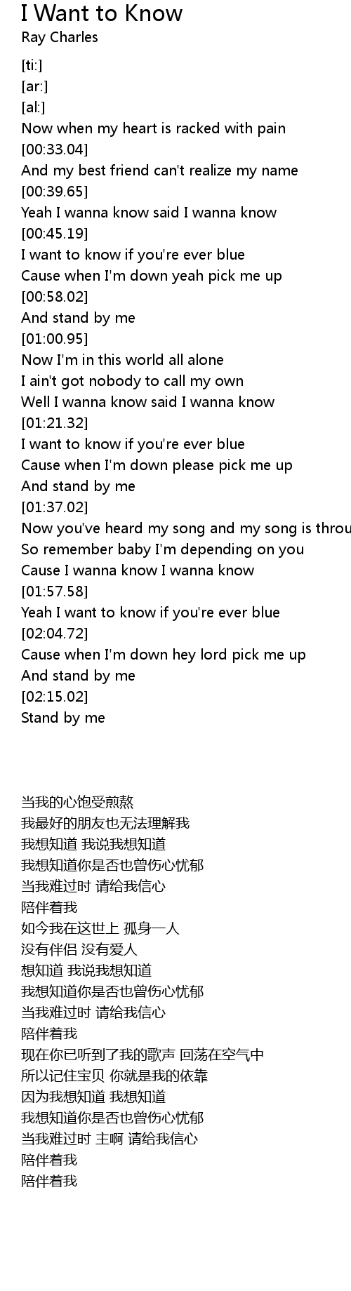 Cause I wanna know I wanna know |