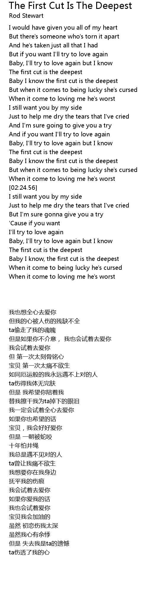 Baby I know the first cut is the deepest |