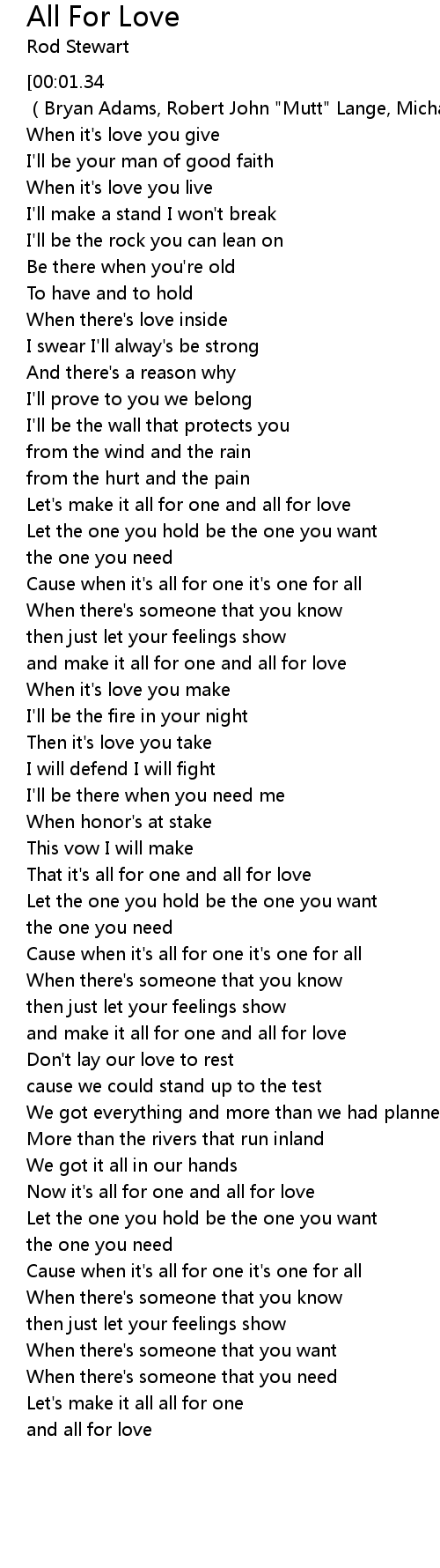 | [04:34.58][00:01.34] | Rod Stewart: ALL FOR LOVE |