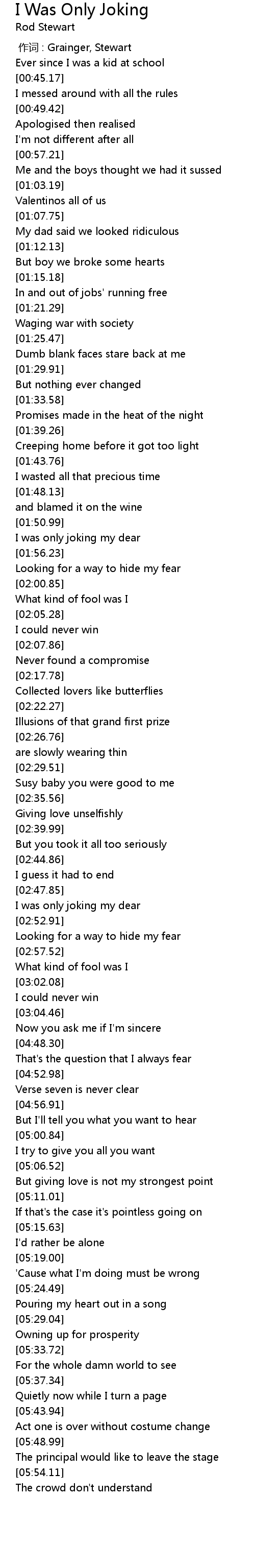 | Song | I Was Only Joking |