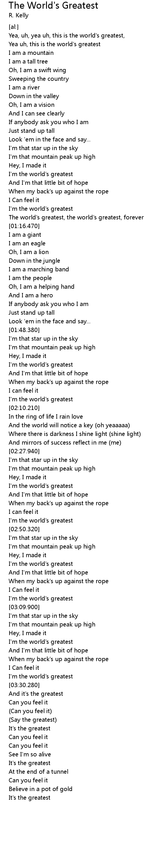 The world's greatest, the world's greatest, forever |