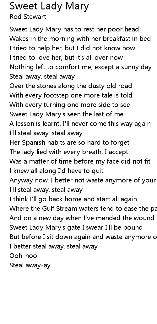 Sweet Lady Mary's seen the last of me |
