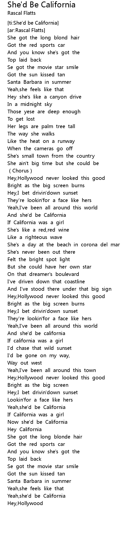 | [03:02.69] | Hey, I bet drivin' down sunset |