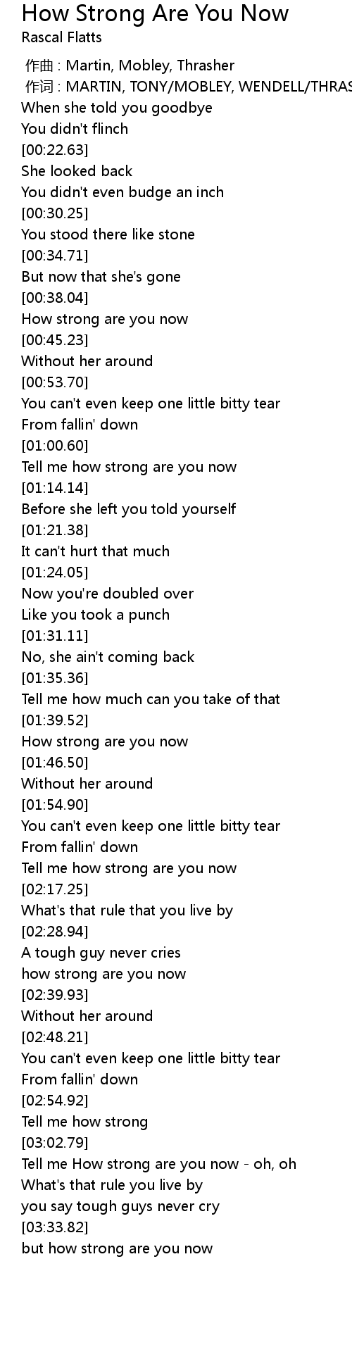 | [03:03.34] | Tell me How strong are you now oh, oh |