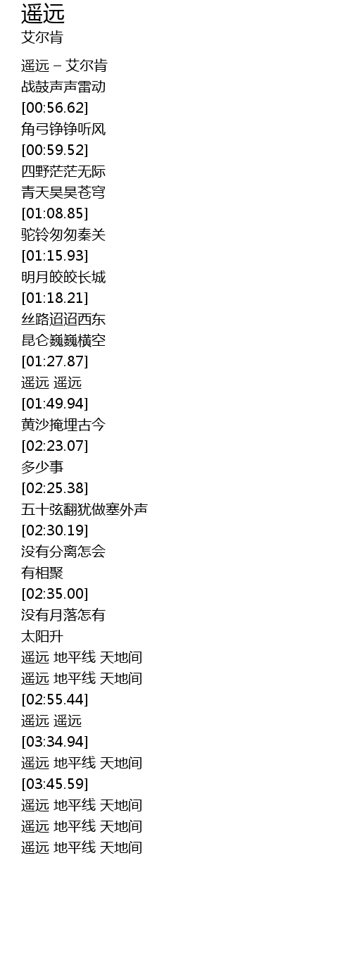 | [00:02.53] | 遥远 – 艾尔肯 |